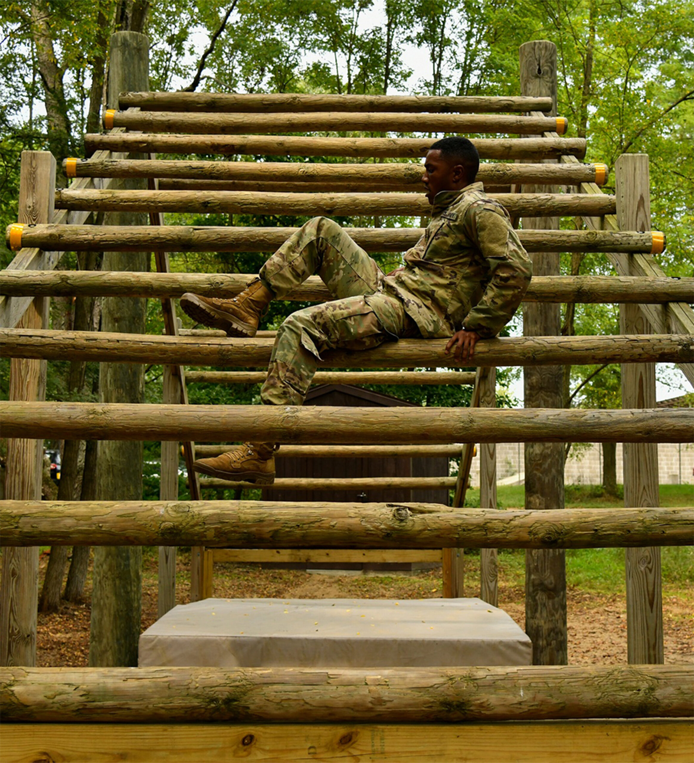 The High Weaver demands agility, concentration, and careful spatial awareness as participants navigate a series of suspended ropes or elevated pathways. Every movement must be deliberate to maintain balance while transitioning between points at height. This obstacle simulates maneuvering through precarious or enemy-exposed areas where missteps can have significant consequences. Mastery of the High Weaver develops coordination, mental sharpness, and the confidence to operate under pressure in elevated, unstable conditions.