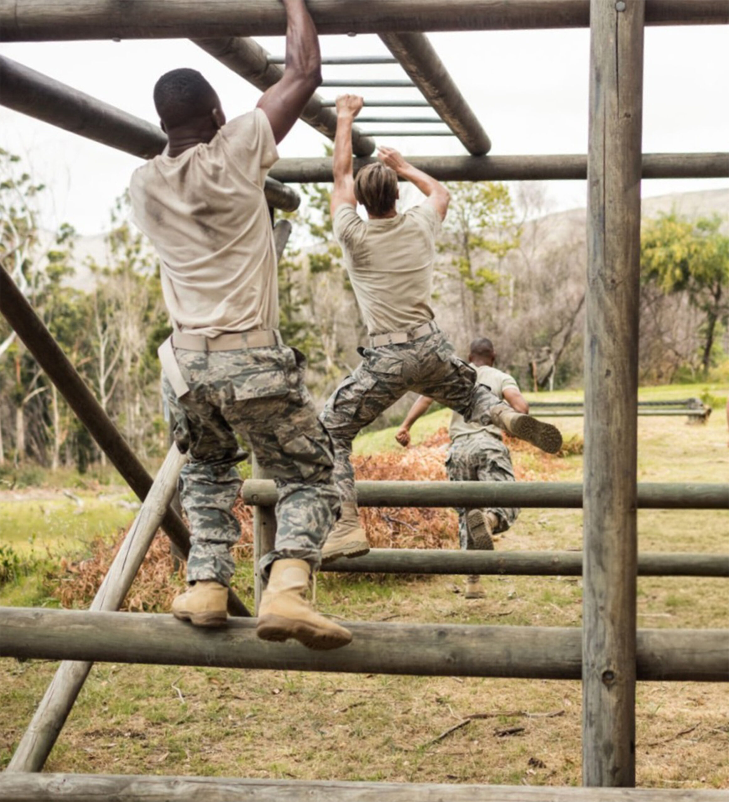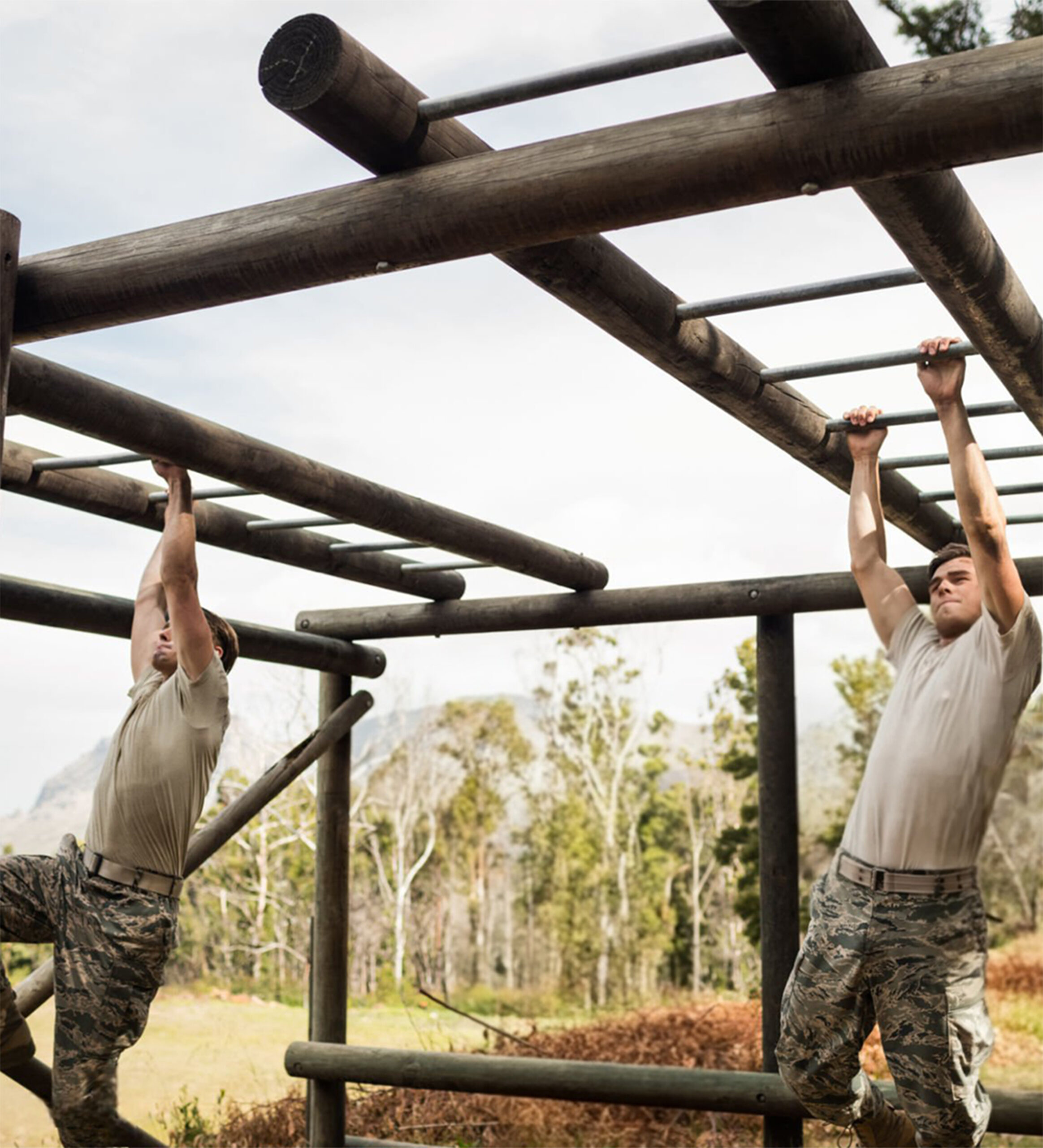 The Monkey Bars test grip strength, shoulder endurance, and upper-body coordination in a suspended horizontal traversal. Participants swing hand-over-hand across a series of bars, requiring momentum, timing, and calculated energy use to avoid failure. This obstacle mimics crossing obstacles in combat zones where steady handholds are scarce, and efficient movement is essential. Completing the Monkey Bars proves not only physical endurance but also mental focus under strain, reinforcing the principle that upper-body strength and strategic pacing are critical in operational settings.